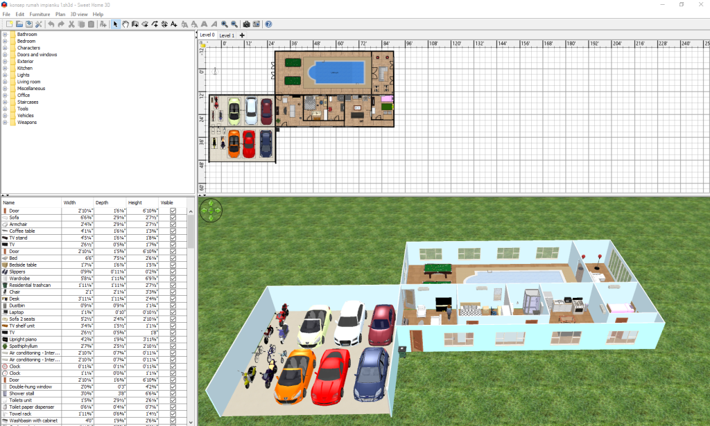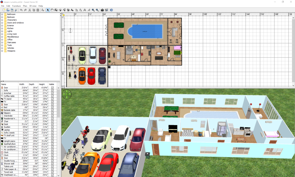 Membuat Desain Rumah 3D menggunakan aplikasi Sweet Home 3D.